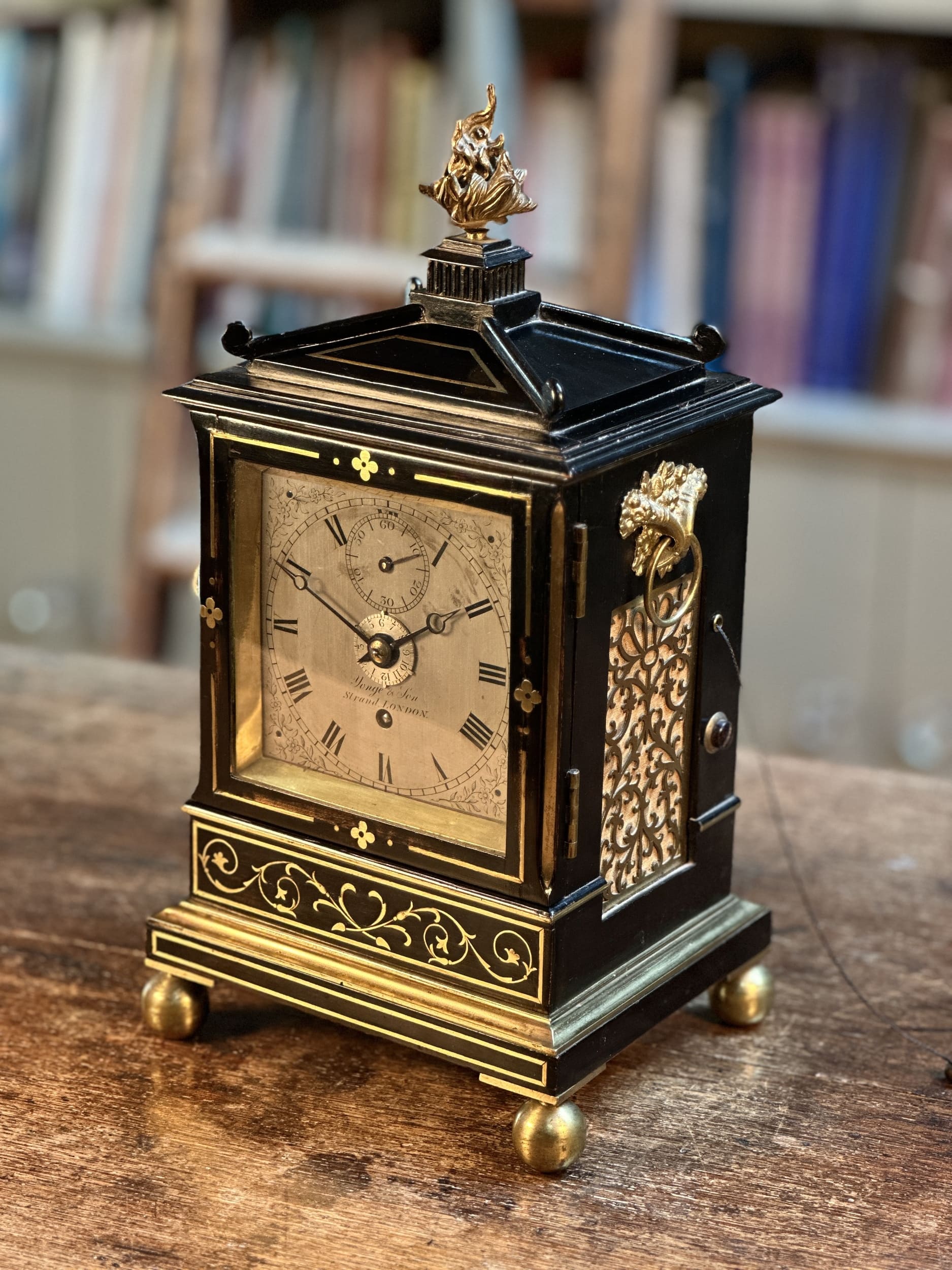 The period was one of technical refinement in English clockmaking, with the widespread use of verge and later anchor escapements, sophisticated striking work, and the adoption of fusee movements ensuring accuracy and steady power delivery. Crossthwaite & Hodges belonged to a generation of London makers who upheld the city’s reputation as the world’s leading center for precision timekeeping before the industrial expansion of the 19th century. A bracket clock from 1775 would likely have been a costly possession, signalling the owner’s wealth, taste, and engagement with the intellectual climate of the Enlightenment, when accurate timekeeping was increasingly valued in both domestic and scientific settings.